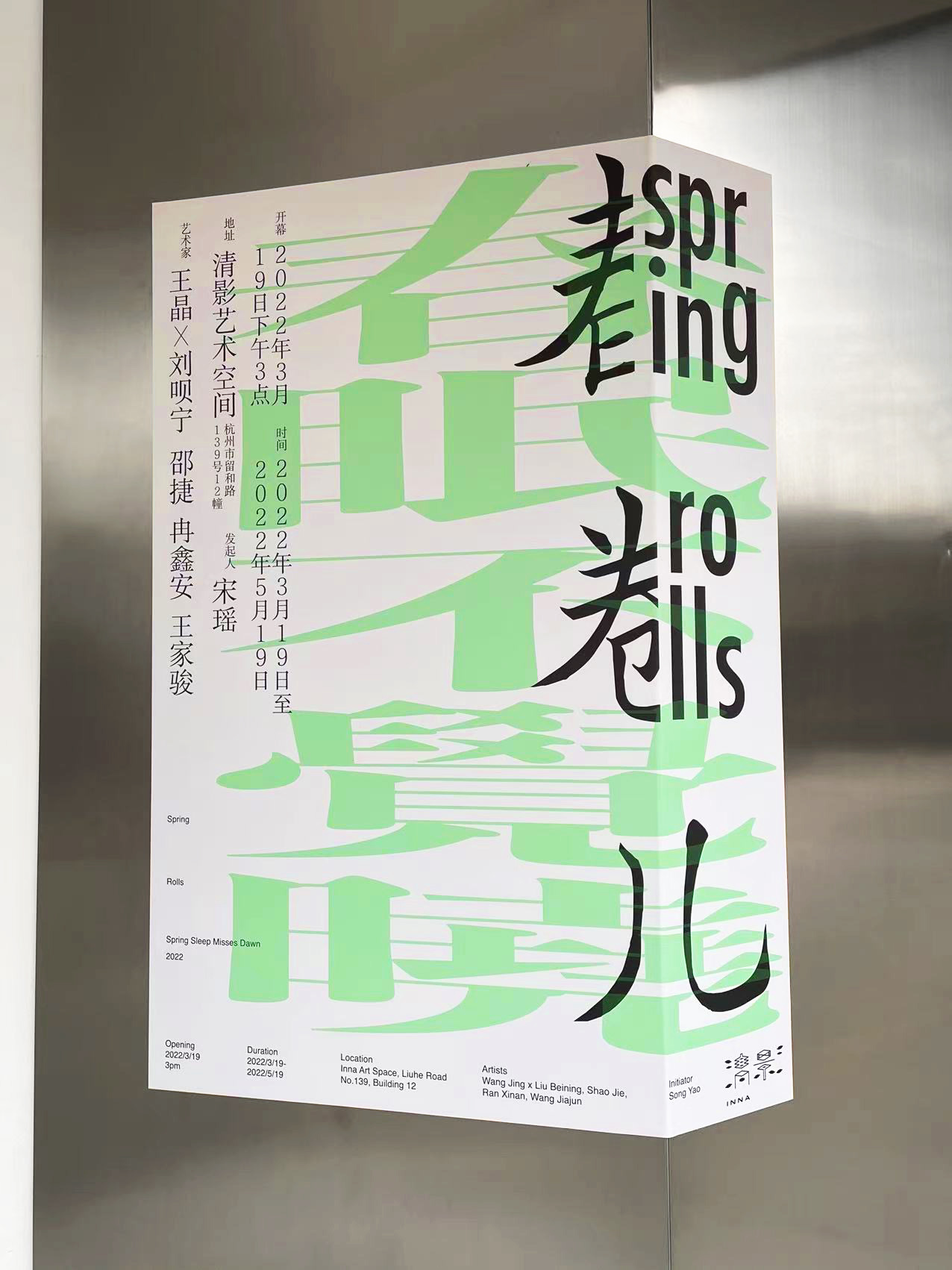 Poster design for group exhibition “Spring Rolls: Spring Sleep Misses Dawn 2022”, an annual spring program run by Inna Art Space. As a cultural symbol, spring rolls represented the limited perception of the Western world for Chinese cuisine. The exhibited work was created by artists who are trying to cast aside the role of “spring rolls”, and creating a brand-new pattern for Chinese Contemporary Art.