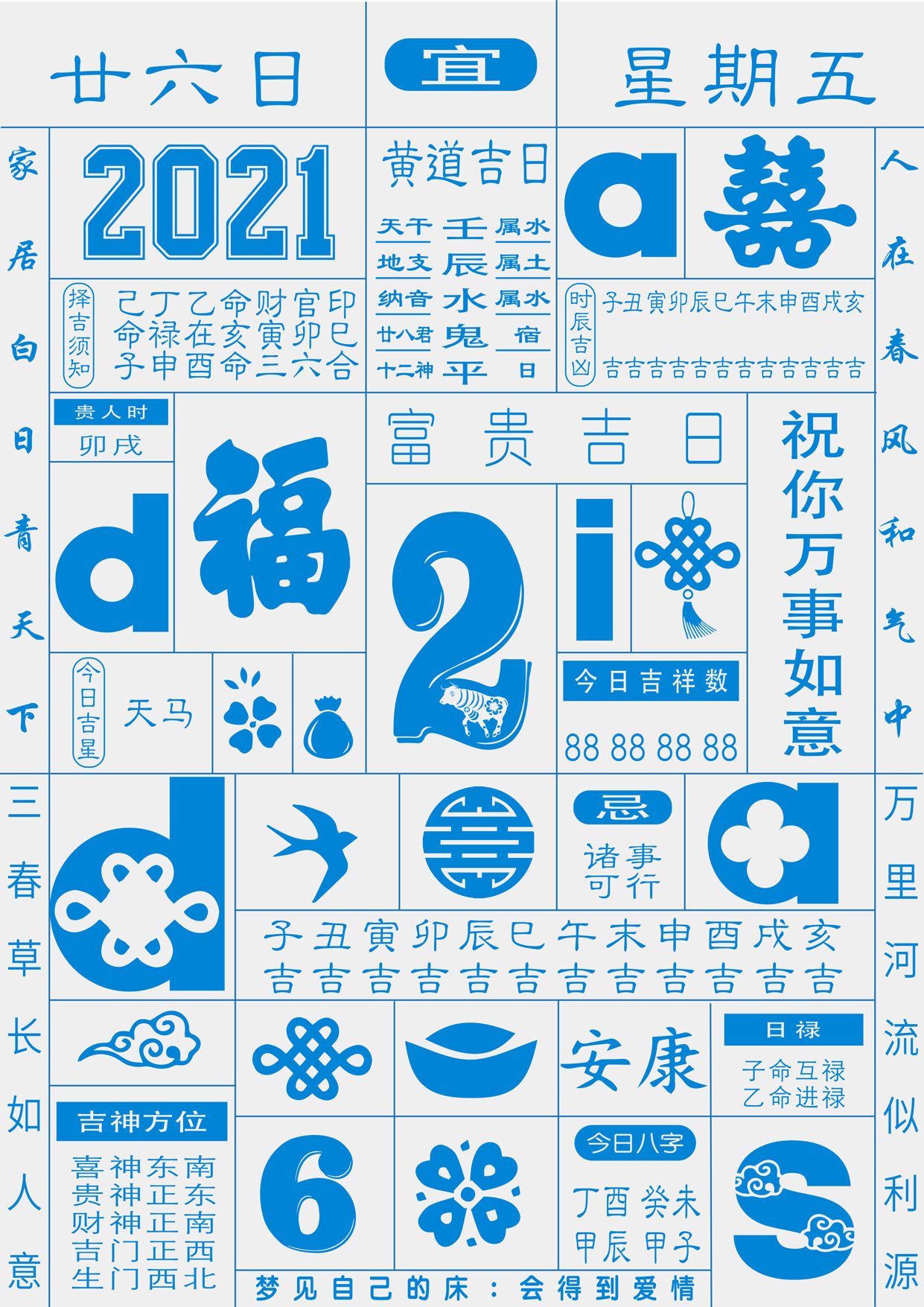Poster design for Adidas CNY 2021. Using the form of a Chinese Lunar calendar, which fits tranditional good wishes and Adidas brand elements.