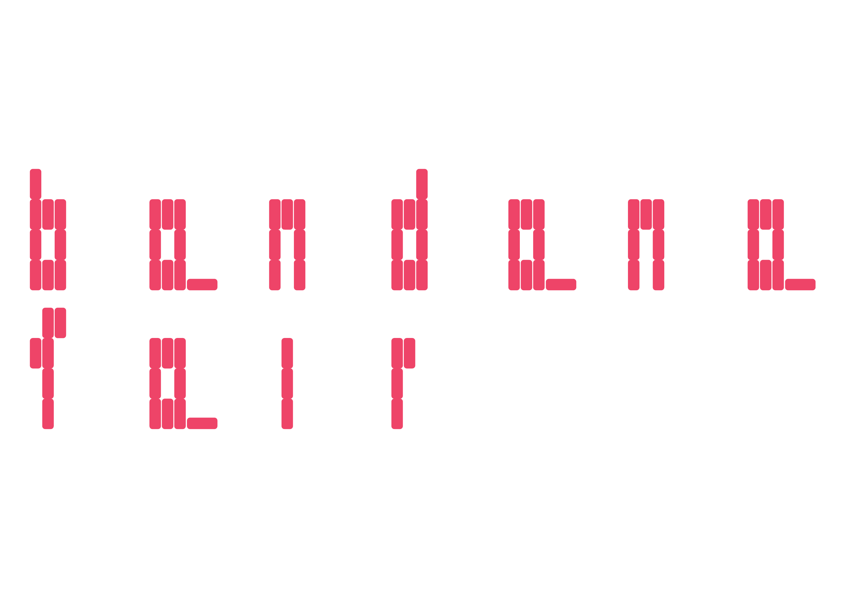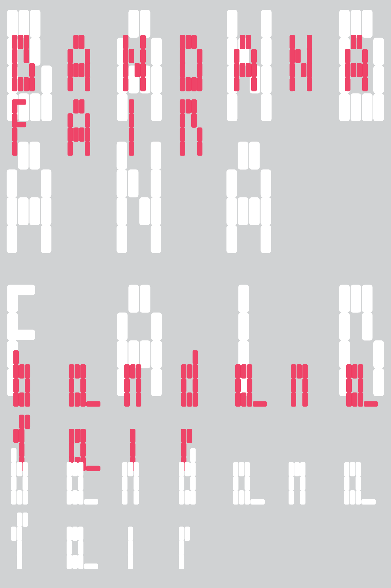 在不干胶标签纸上,基于其限制的网格系统而设计出的模块化字体。 每个字母的动作各不相同,以体现在其字体设计过程中由于限制带来的解构与重组。