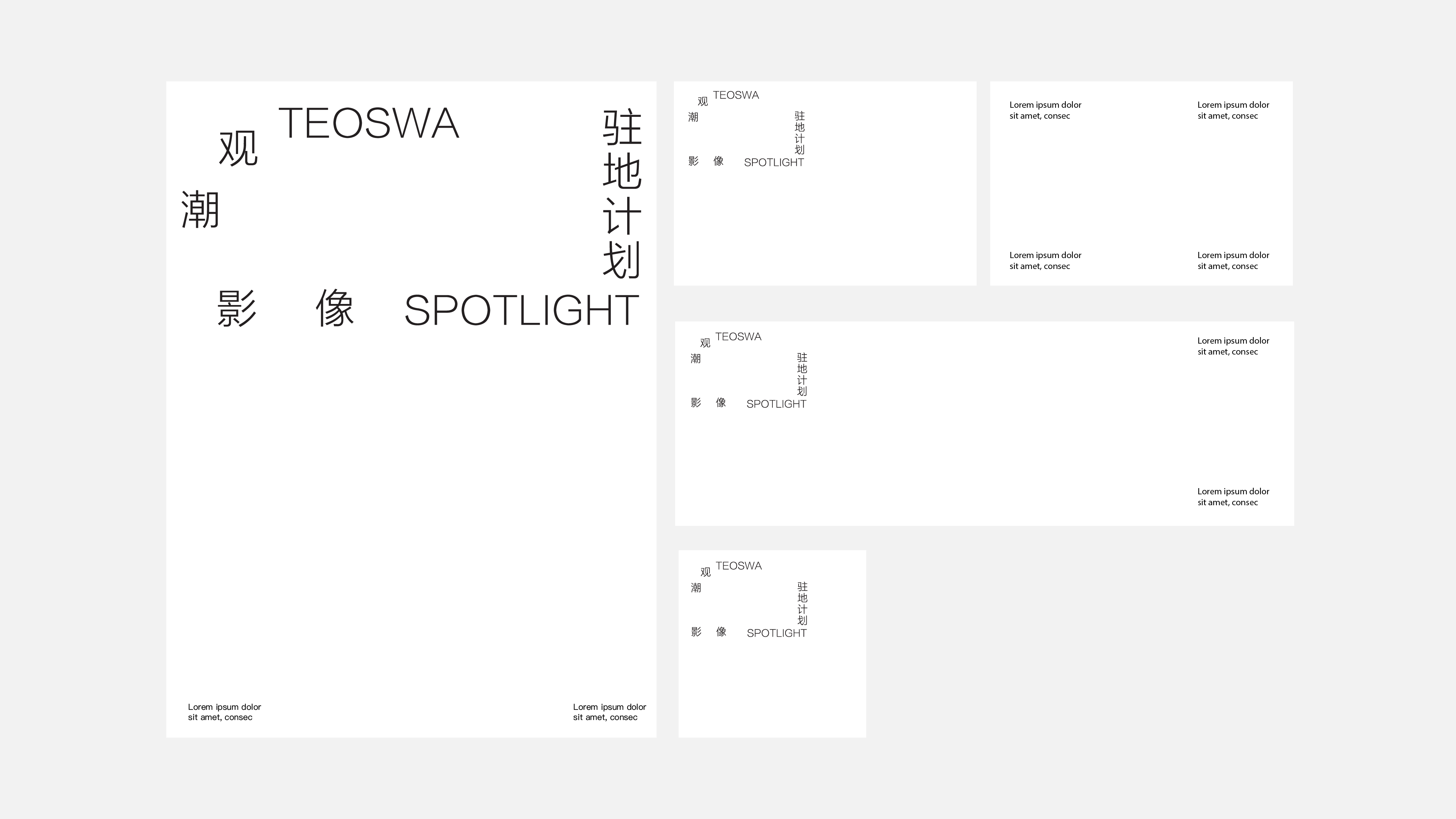 驻地计划中,其中一个设计要求是需要与 TIFAF 的视觉形象有相应的联系。在设计上,我们用放射性的观潮影展logo图形动态化,将文字围绕着图形 Logo 逐一展开,得到了一个可以灵活使用的视觉形象系统。